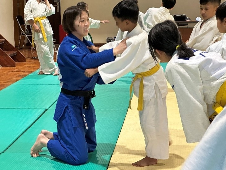 大会当日は、2019年の柔道ジャパンカップで来緬された井上康生先生の応援メッセージをいただいたほか、2025年世界選手権女子57キロ級の銀メダリスト玉置桃選手(三井住友海上所属)も特別ゲストとして駆け付け、ジュニア選手に対して玉置選手の得意技である大内刈りなどの技術指導を行いました。