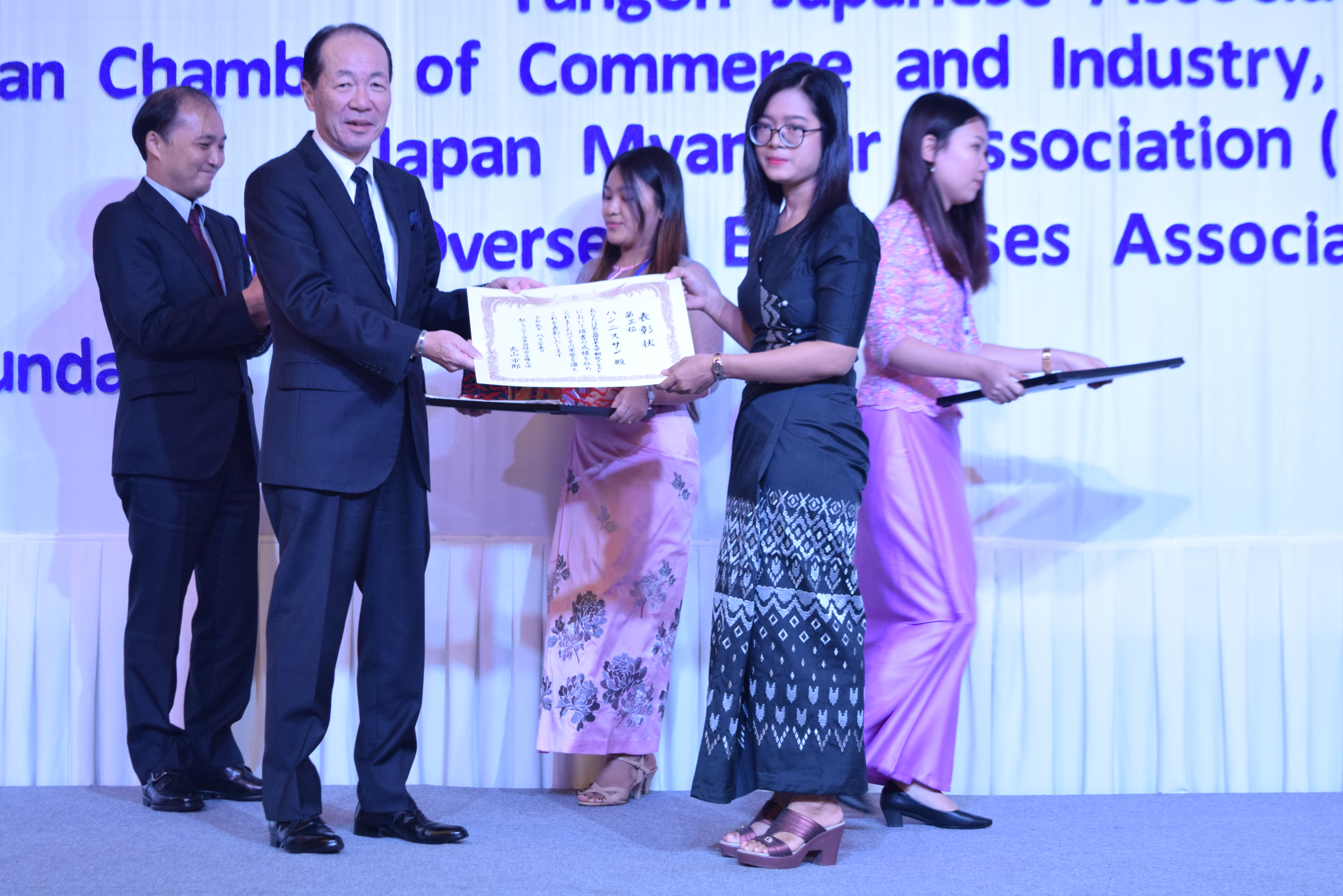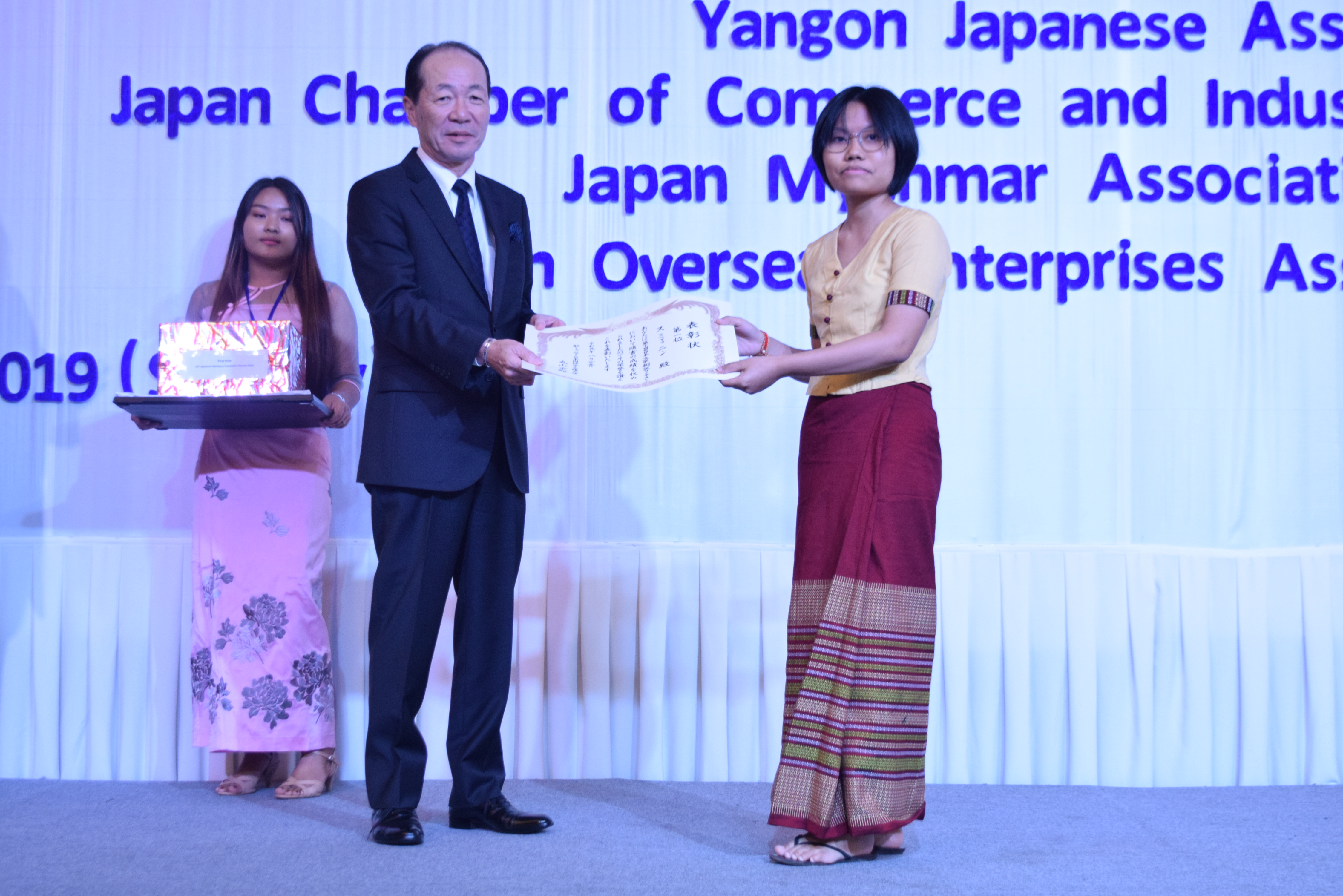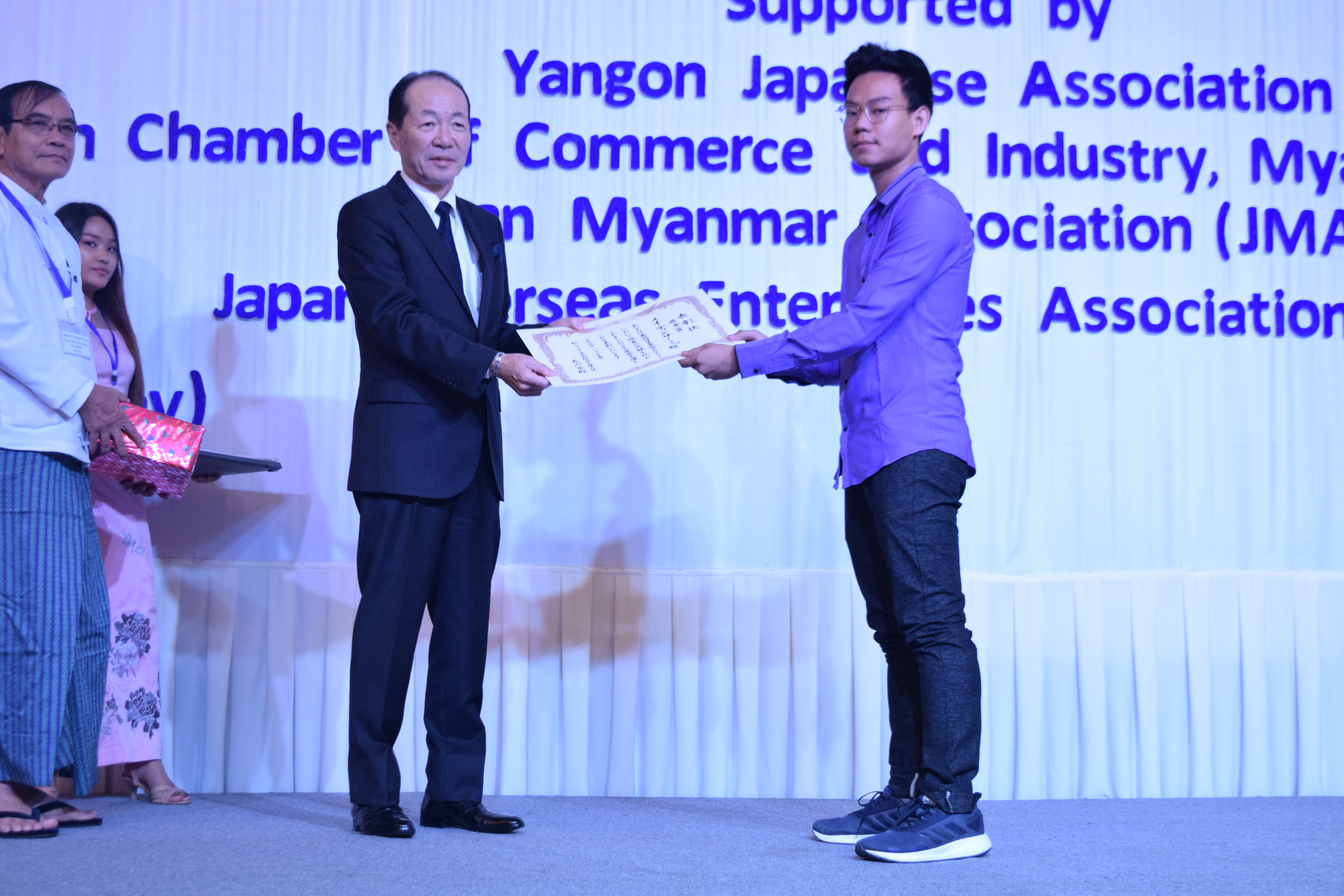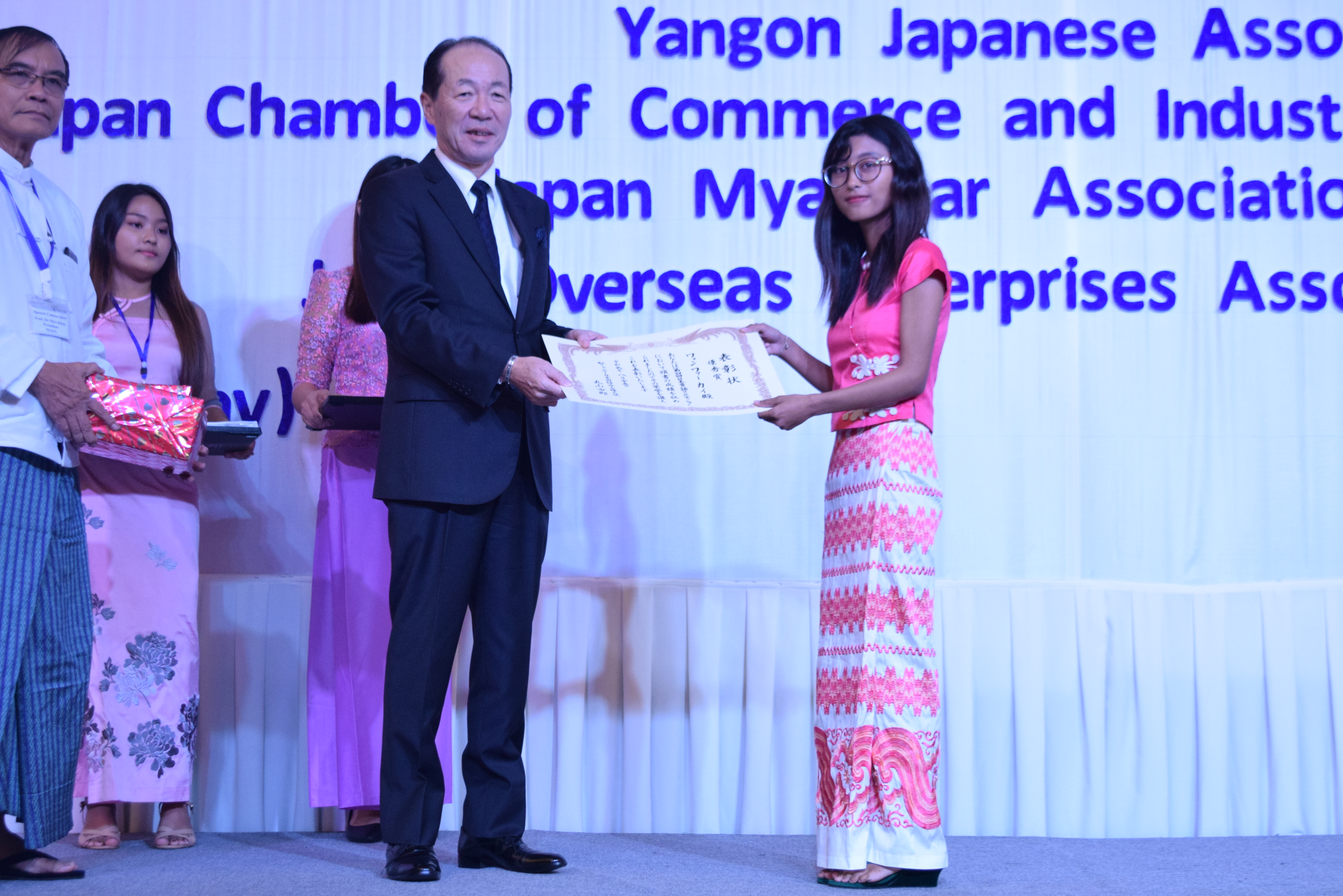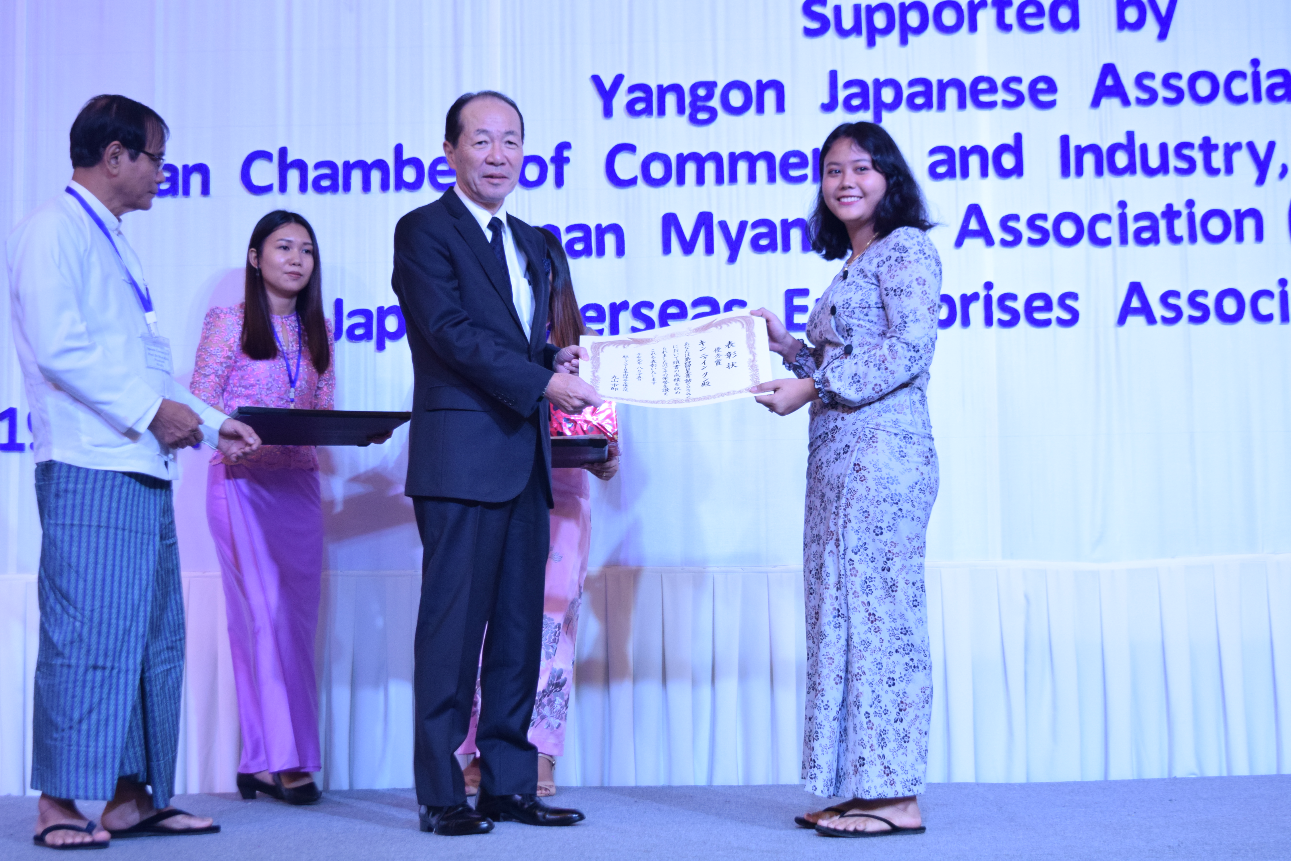ဆုေပးပြဲကို က်င္းပခဲ့ပါသည္ (ဂ်ပန္သံ႐ံုးႏွင့္ ျမန္မာႏိုင္ငံ ဂ်ပန္ျပန္ ပညာသင္ေဟာင္း အသင္း [MAJA] တို႔ ပူးေပါင္းၿပီး၊ ရန္ကုန္ရွိ ဂ်ပန္ လူမ်ိဳးမ်ားအသင္း၊ ဂ်ပန္ ကုန္သည္ႀကီးမ်ားအသင္း [JCCM] ႏွင့္ ဖုကုအိုကာျမိဳ႕တို႔မွ ပံ့ပိုးကူညီခဲ့ပါသည္)။
